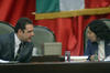 La Presidenta de la Mesa Directiva Ruth Zavaleta Salgado dialoga con el vicepresidente Cristián Castaño, durante la sesión ordinaria.